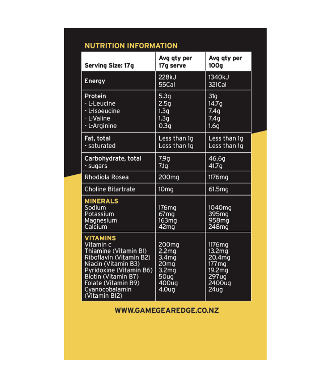 Forget ordinary hydration powders. Game Gear Edge Hydration is a precision‑engineered performance blend made right here in New Zealand. With full-spectrum electrolytes, B‑vitamins, adaptogens, and amino acids, and a low sugar footprint, it's created to support physical performance, focus and recovery.