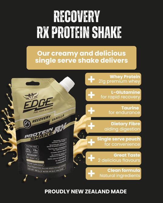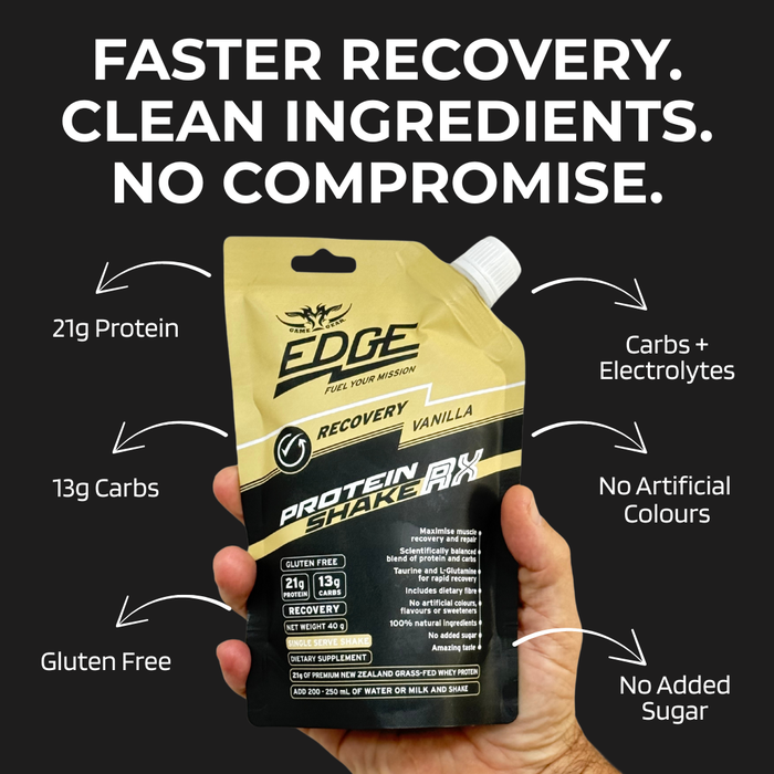 Enjoy Recovery RX Protein Shake after training, outdoor work, or physical activity to help support recovery and keep your