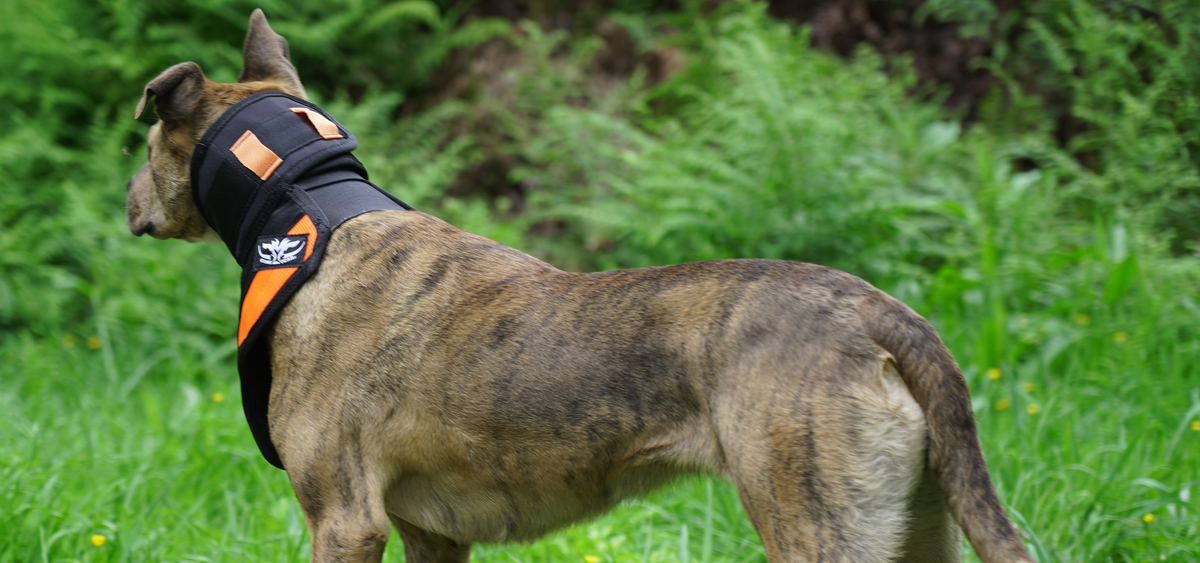 Neck-Chest and brisket is well protected and the dogs remain free moving. You can now choose between the standard vest or to have the stinger - slit added.