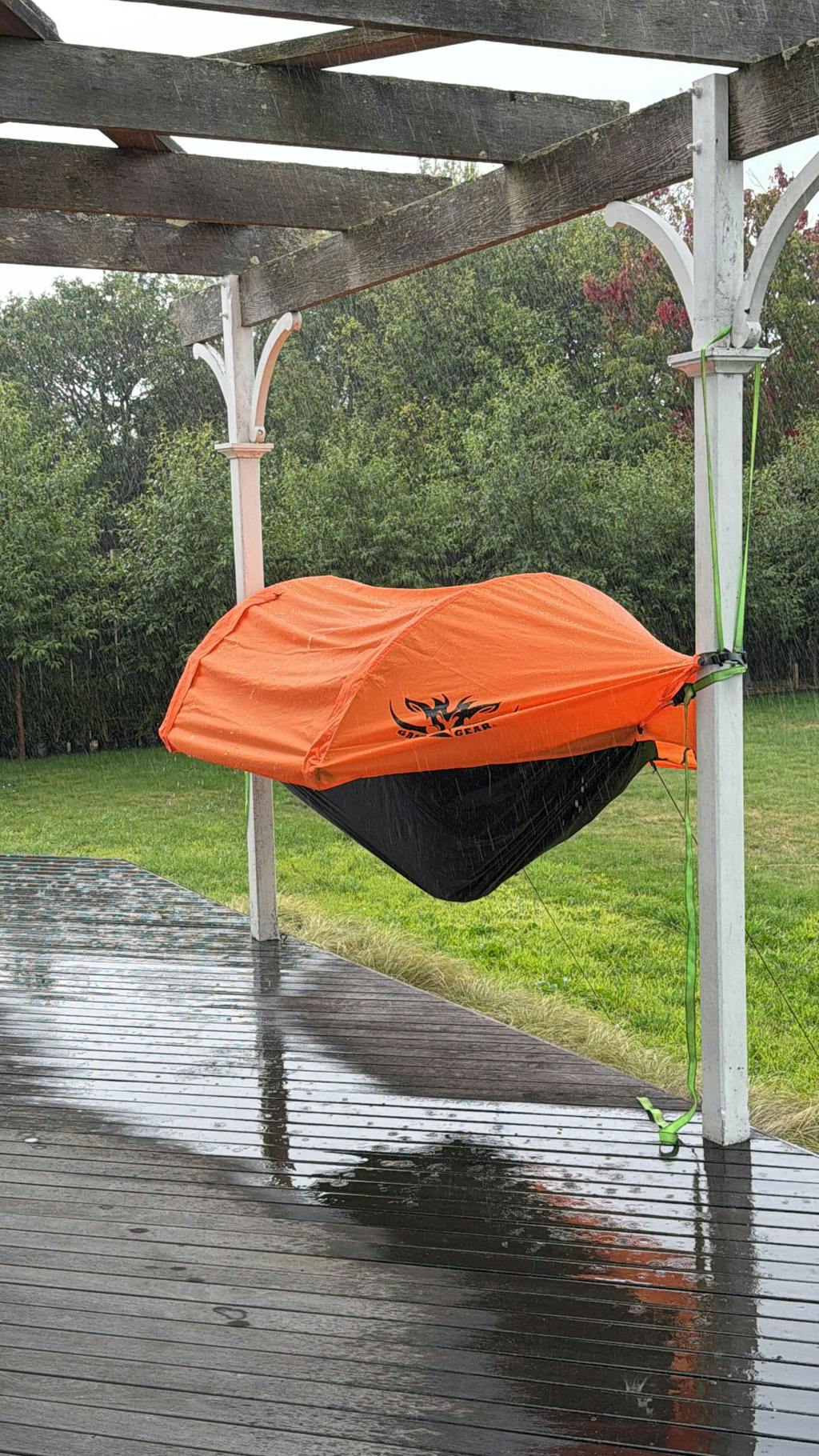 Most hammocks requires separate rain fly and bug protection -our floating bivy features full bug protection with a lightweight high-density polyester fiber mesh. Weather protection is provided by the clip in waterproof cover made from super durable 260T polyester waterproof rain fly. The mesh and waterproof cover are framed up using two 7 series aluminum poles that provide volume and space within the hammock.