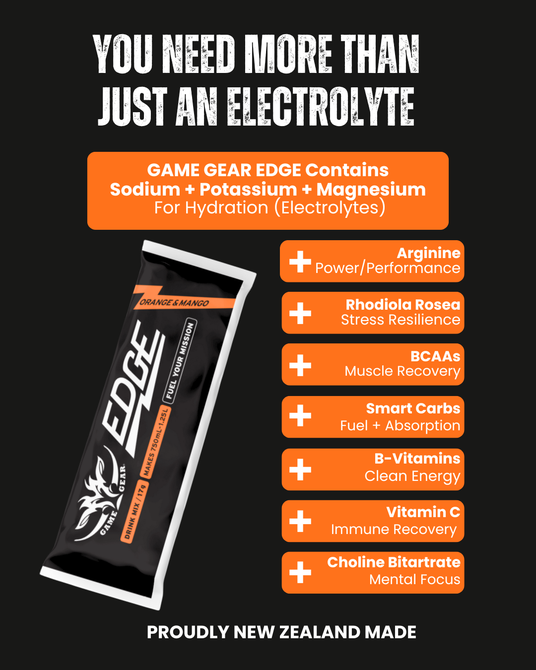 Forget ordinary hydration powders. Game Gear Edge Hydration is a precisionβengineered performance blend made right here in Newβ―Zealand. With full-spectrum electrolytes, Bβvitamins, adaptogens, and amino acids, and a low sugar footprint, it's created to power your body, sharpen your mind, and speed recovery.